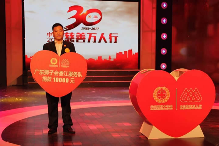 嘉诚公司总经理代表广东狮子会香江服务队向中山市红十字会捐款10000元支持中山慈善万人行